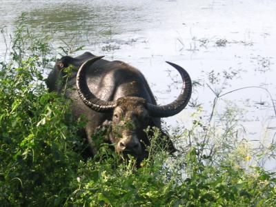 Bei einer Morgensafari konnten wir uns doch tatsaechlich zu den Gluecklichen zaehlen, die einen Leoparden zu Gesicht bekamen. (Yeah, ich sah sogar 2, wenn auch nur kurz im Dickicht!) Sonst sahen wir noch unzaehlig verschiedene Arten von Voegeln, Krokodile, Warane, Hirsche, Rehe, Wasserbueffel und natuerlich Elefanten.